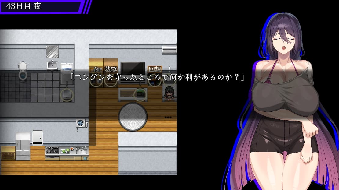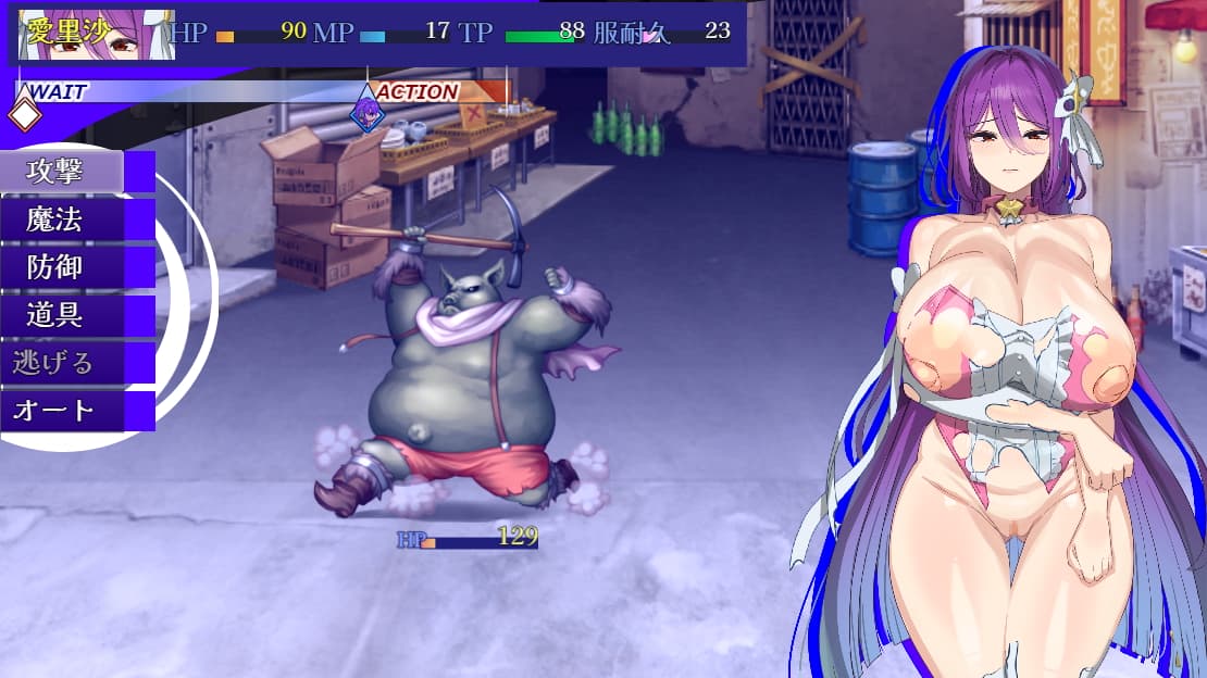 - 全裸:汚染度100以上で装備を外すことができ全裸になれる