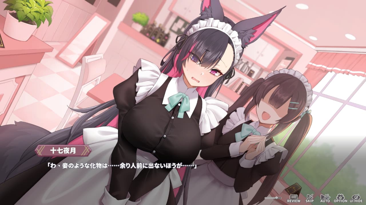 かつては神と同じくらいに崇められた妖狐、十七夜月(かのう)未来が力を取り戻す手伝いをしてあげるSLG。彼女は昔からいる妖怪ですが100年間誰にも見つからないように結界を張って隠れていたので現代知識がありません。
