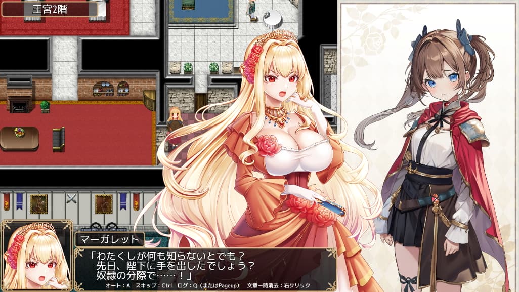 | ED8 奴隷の少女騎士 | 奴隷状態 | カジノで借金をした後所持金を10000G以下にして受付と話し「借金を返せない…」を選ぶと奴隷に堕ちる 奴隷状態から脱出するには王宮2階で発生するエッチシーンを見ていく必要がある |