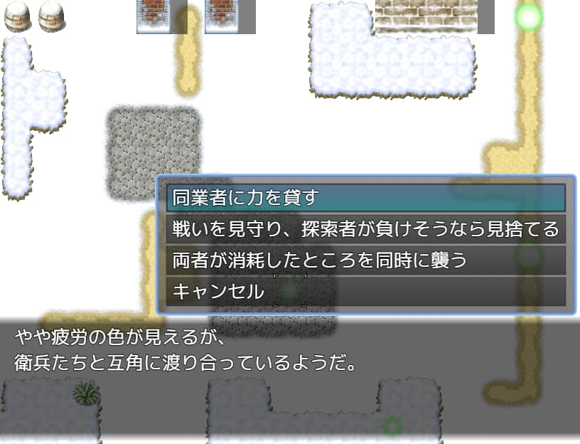 | 衛兵への色仕掛け | 冬の城のイベント 城の入り口をふさいでいる兵士に色仕掛けをする |