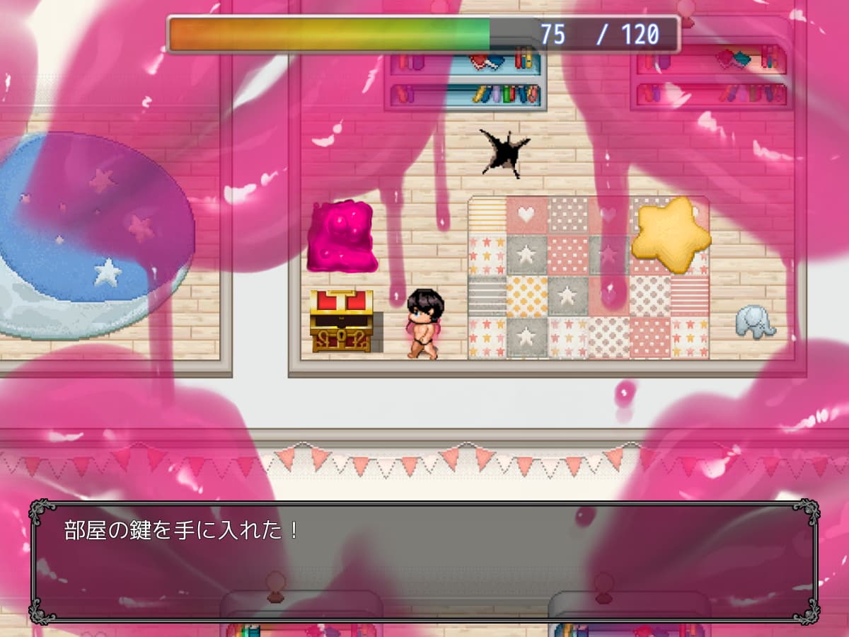 オブジェクトを破壊するアクションで雑魚敵のリップやインプは倒すことが可能です。接触するとエロシーンになりますが、攻撃エフェクトを発生させすぐに引くというテクニックで被弾を避けつつ撃破が可能です。レベルが上がると体力が増加して鬼ごっこも楽になるので適度に経験値の入手しつつゲームを進めましょう。