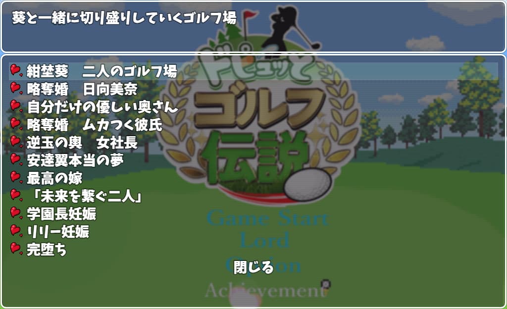 | 完堕ち | 7/1パター練習場 8/3ロビー→コース(下段左1番目のマップに入った瞬間イベントが始まった) 9/3レストラン 10/3ロビー 寝取られルートで以上のイベントを見ていると12月の終わりに実績達成となる |