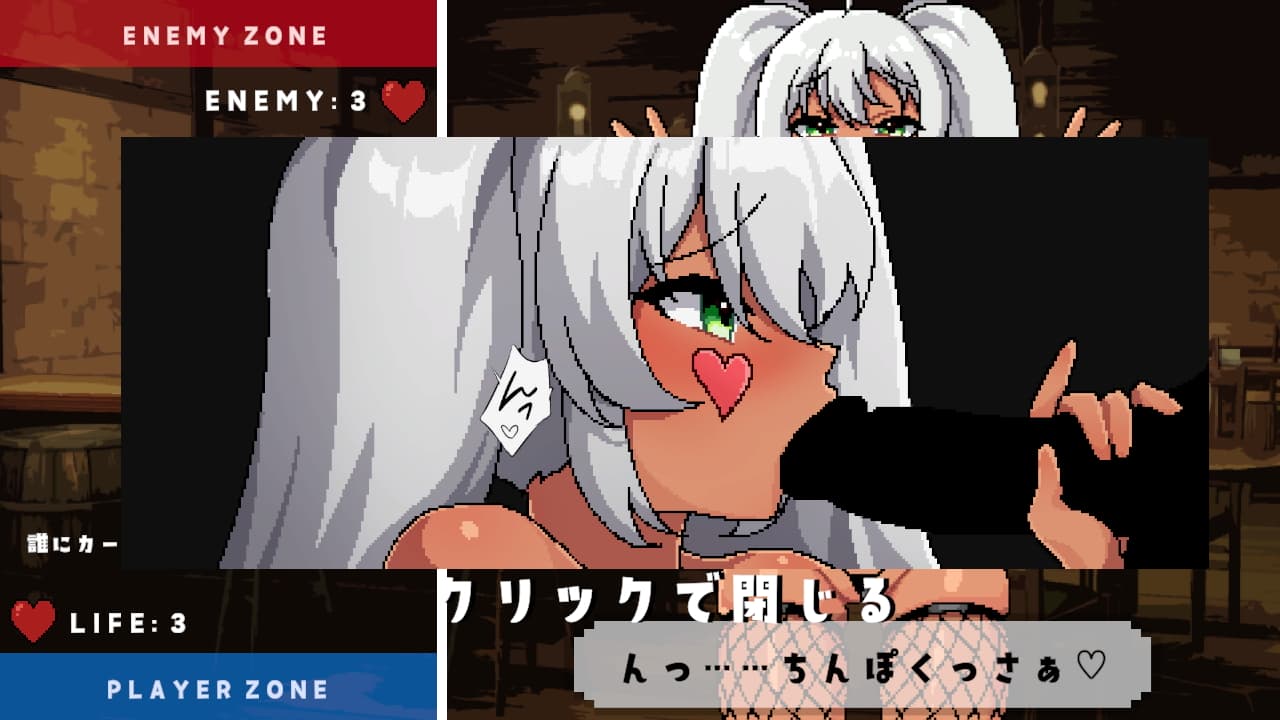説明されていないものとしては、8枚のカードは左上から右下にかけての順番で山札になっている。フェラカードを引いてシャッフルが起こらない限り順番は記憶しておけるから、ドクロカードの位置を覚えてメスガキバニーに押し付けて勝とう。