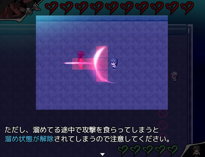 本作の鬼との戦いはアクション形式です。キーボード操作が推奨されています。ゲームパッドは各キーの入力に対応されてないため強敵とのバトルでは私もキーボードを使っていました。難易度としてはそこそこ高いですが、一度敗北するとボスのHPを1にする選択が可能なので苦手な人でもなんとかなると思います。