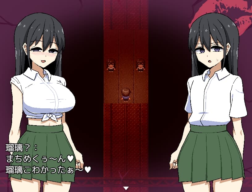 | 巨乳瑠璃(おっぱい押し付け) | 地下室探索中分身した瑠璃の選択肢を間違う ピンク選択肢 |