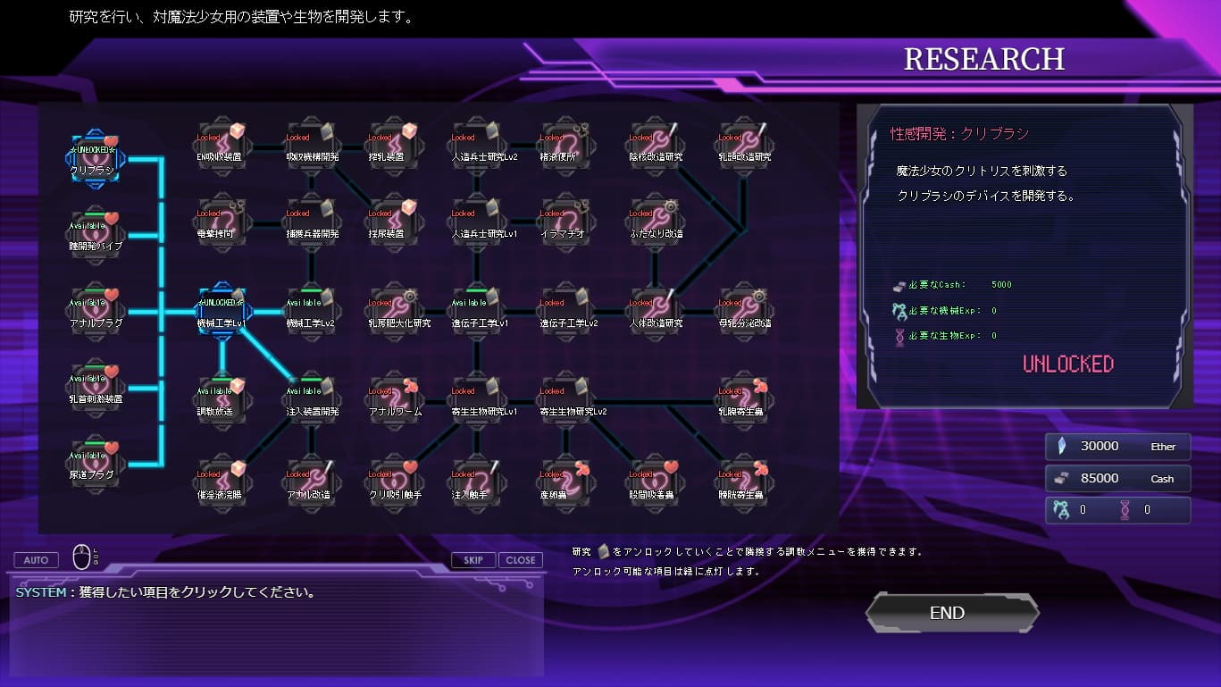 本作は基本CGが少ない代わりに全てのコマンドがアニメーションしたり差分が大量に用意されているタイプの調教シミュレーションです。魔法少女ミスティック・ルーンの心を堕落させつつ未知の英知を知るためにプレイヤーは様々な試みを彼女の身体に施すことになります。