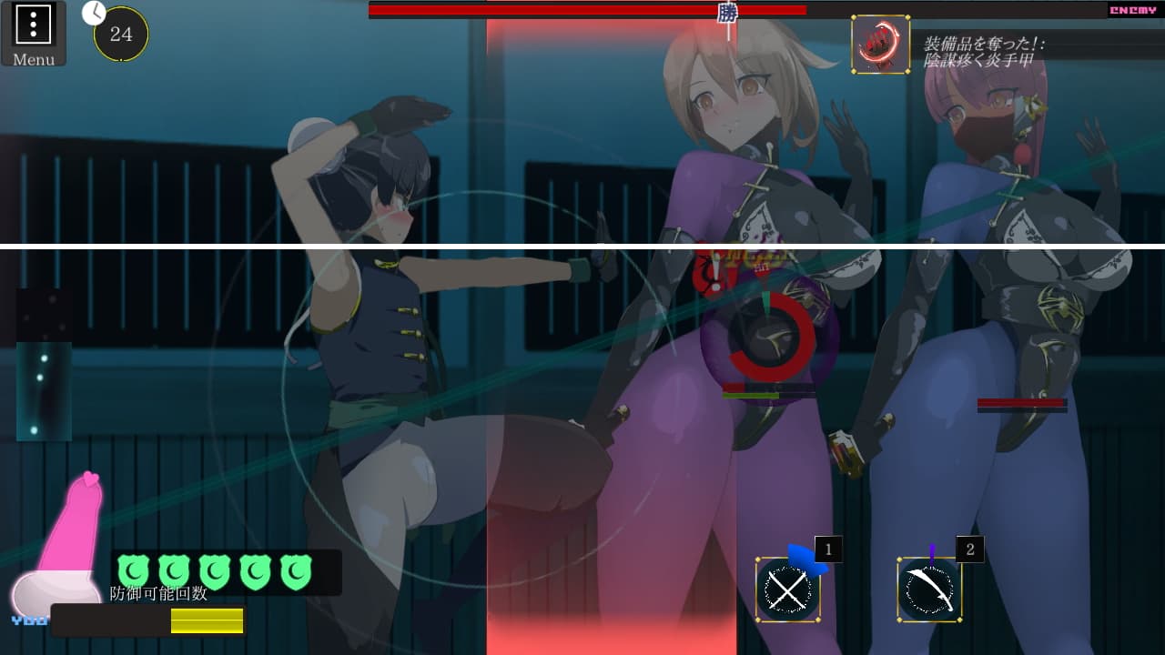 前作のような女の子とのバトルの駆け引きに3年間という期限が設けられた育成要素が加わったとてもユニークな形式のゲーム。今回の目玉と言えるのは「1対多数」の戦いが発生しうるという点で、戦闘中の拘束から発展する男性受けのエッチシーンや敗北時誘惑に屈してしまった時のエッチシーンでも多人数プレイに発展するという趣向が用意されています。