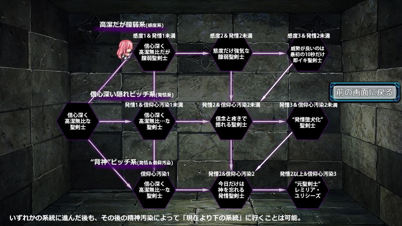本作はステージクリア後に「精神汚染」を施すことでレミリアがどのような形でエロ堕落しているかで3ルートに分岐します。