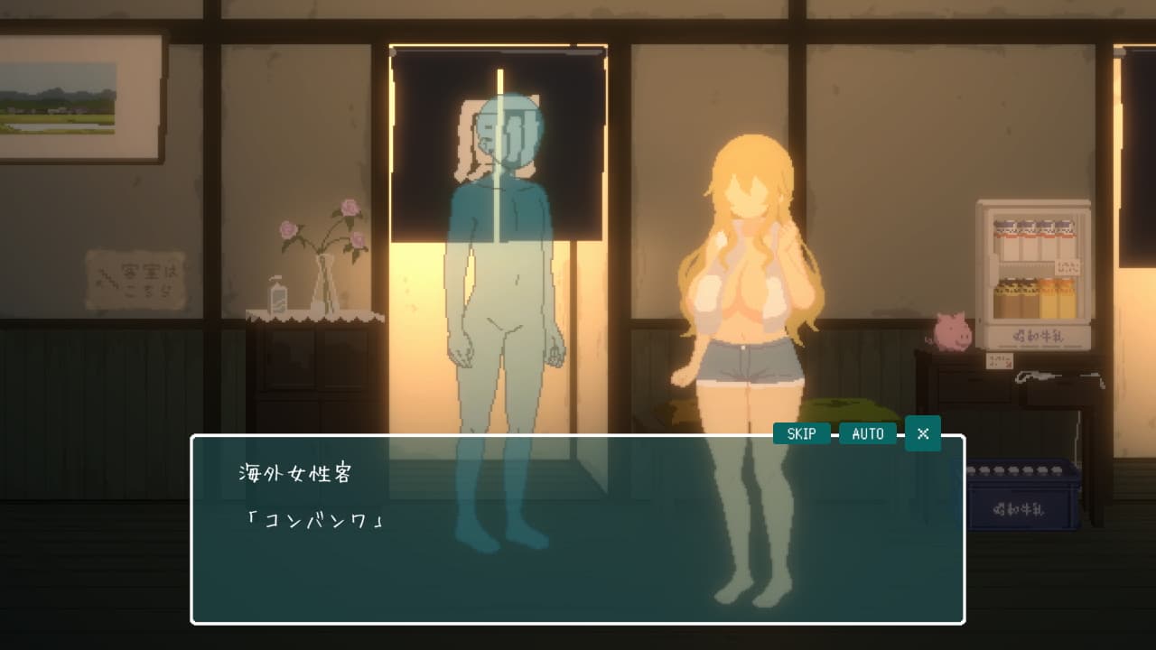 クリア後のセーブデータから開始できるエクストラモードなんですが、風呂の前にあるドリンクを飲むことでヒロインの好感度が調節できるため回想の見逃しを回収しつつ未視聴のエンディングを回収するのに向いている機能です。