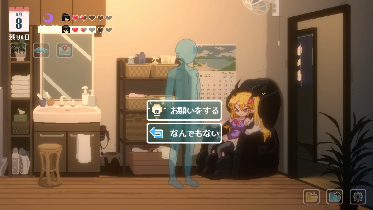 - パンツの入手(全裸連れ歩き):10日目以降ほのかはほのかがお風呂に入っているタイミングの脱衣所、ひなのは部屋に下着が落ちているので拾う