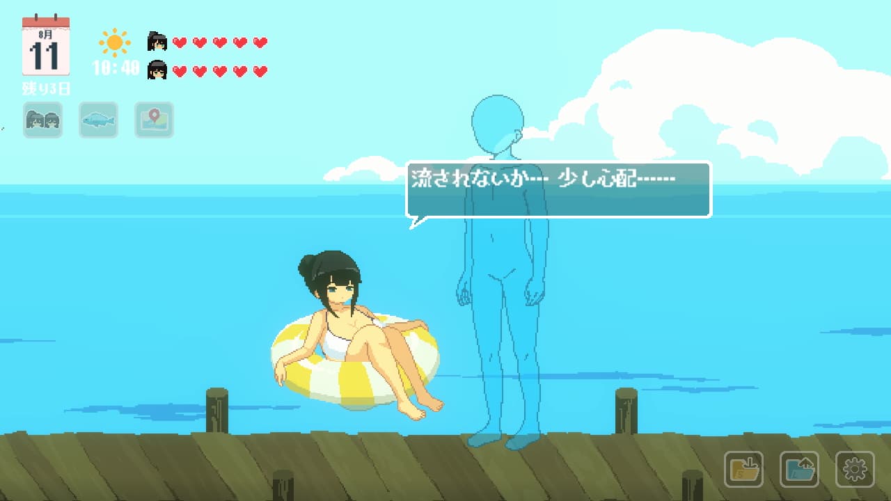 | 海に浮かんでいるひなの | 【11日目以降】 【浮き輪を入手する】 【桟橋】 |