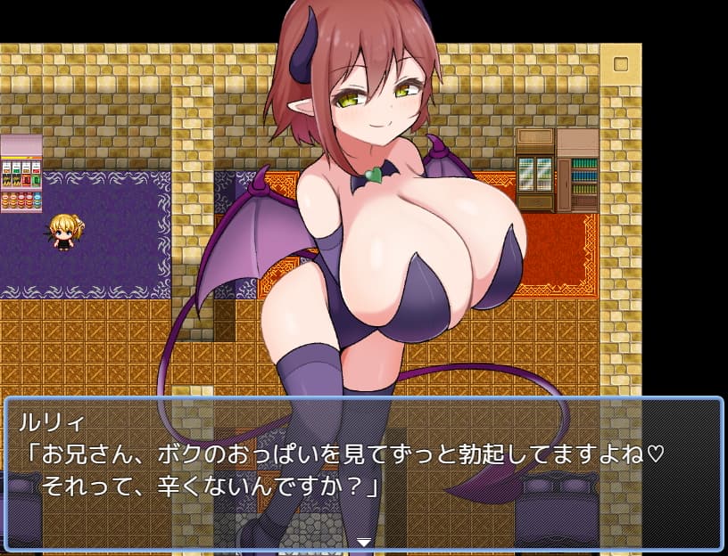 本作はほぼ全編エッチシーンのRPGです。戦闘要素はなく、街に居るサキュバスに話しかけてエッチシーンを見ていったりヒロインから誘惑を受けるというもので、一部の淫魔とはミニゲーム勝負が発生します。