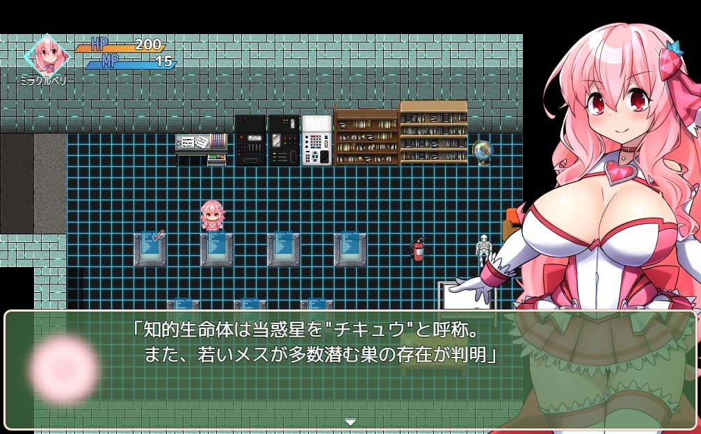 本作のやり込み要素として65名いる生徒の救出というものがあり、基本的には学内にいる家畜娘を倒すことで救助になりますが、一部の家畜娘は物陰に隠れていたりベリーを見ると逃げたりします。1F中央にいる救出した立花が名簿を見せてくれます。
