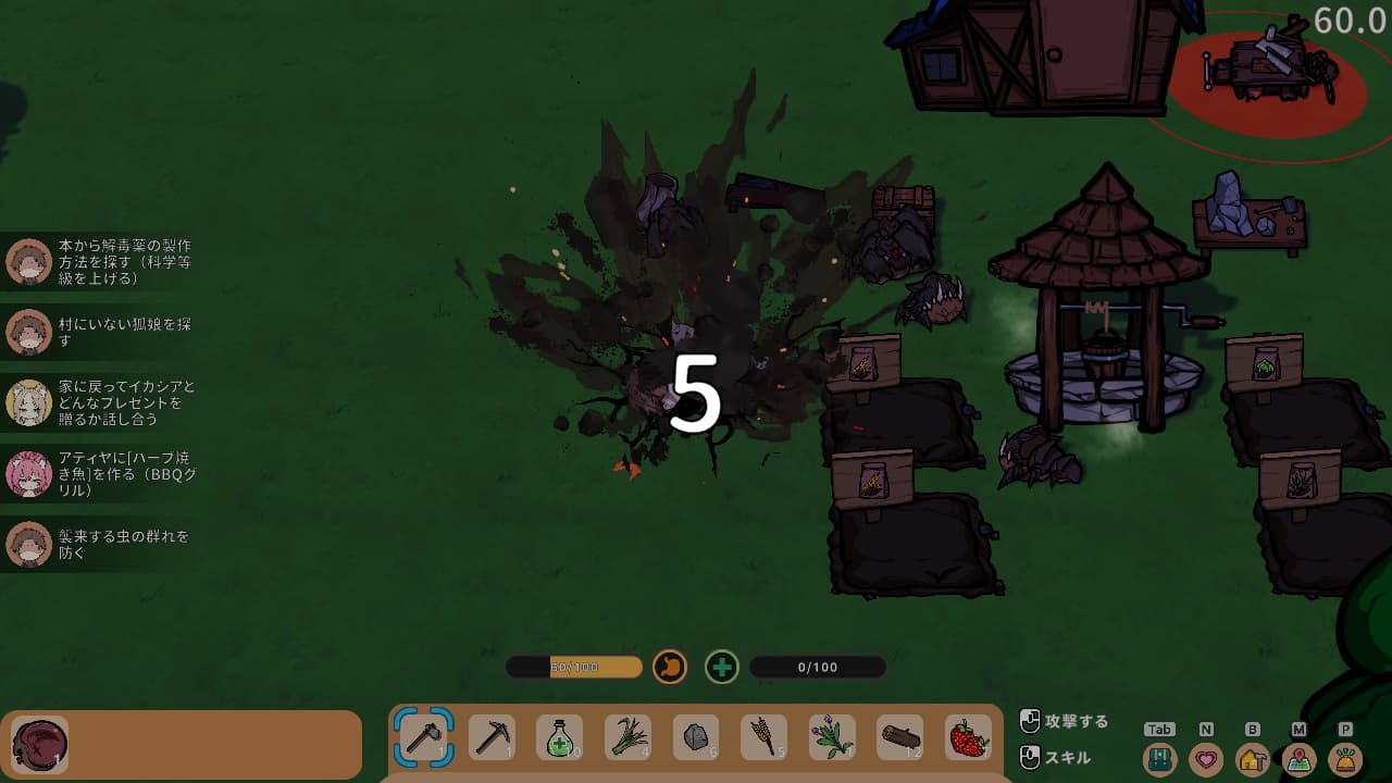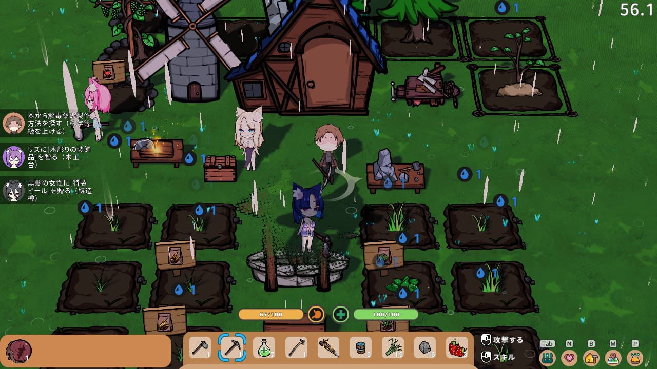 ヒロインが拠点に参加すると自動で仕事をするようになります。指示は出来ませんが大体1次産業的な事は彼女たちがやってくれますね。例えば、畑の種植えから苗のお世話収穫まで一通りを勝手にやってくれます。高度な作業については主人公が操作する必要があるので、まあ必要ないのに武器作るみたいな事故が発生しないようになっています。