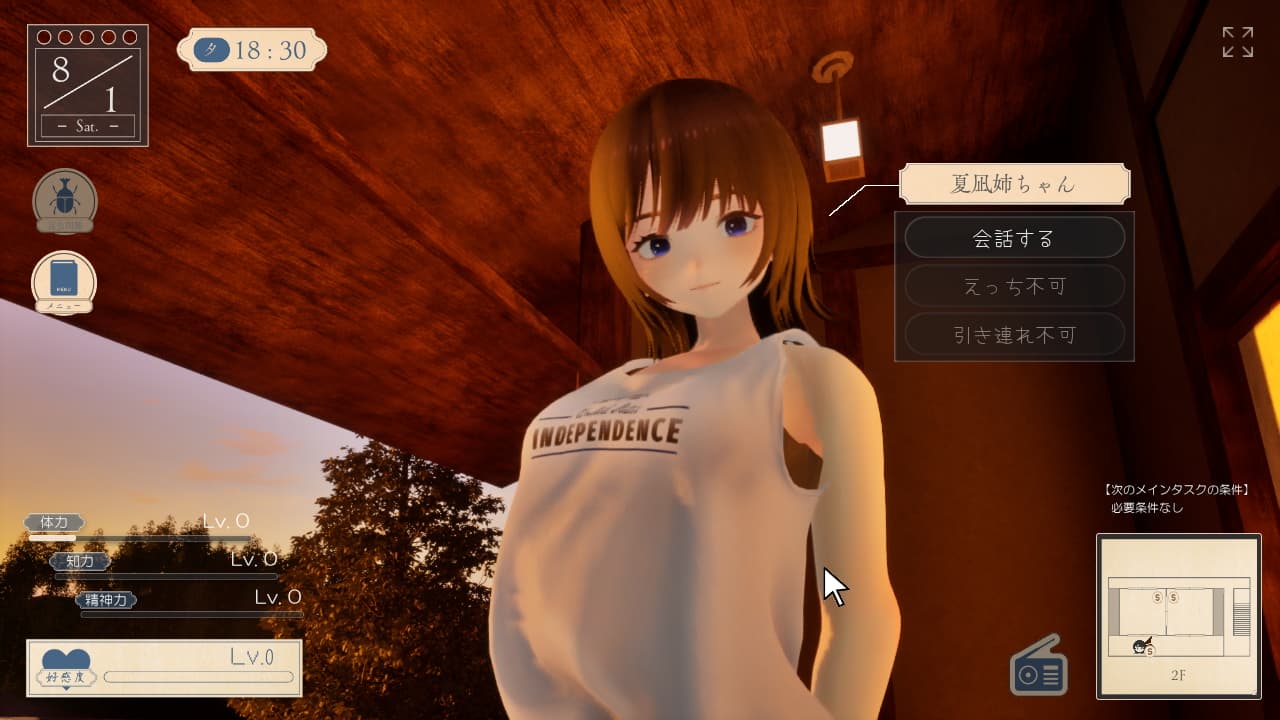 このゲームは30日間でメインタスクを完了しないとノーマルエンドになってタイトルに戻されてしまう。基本的に夏休みの時間経過については「3種の主人公ステータス育成」と「なつねえの好感度を上げる会話もしくはエッチ」によって進行するのだが、これにプラスして「何もステータス変動が無いサブタスクの実行」でも時間が進む。