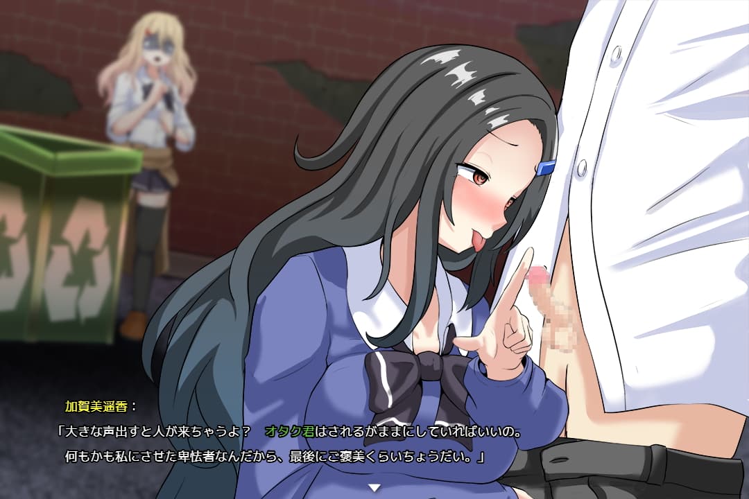 ゲームとしては遊んでいて居心地の悪さを感じることが多かったのですがエロ作品としては十分楽しめるゲームだと思います。主人公は用務員がエロサイトに投稿している動画を見て毎晩オナニーしているのですが、そのネタがギャル友達の和奏たちだということに気づくのはシナリオ終盤です。