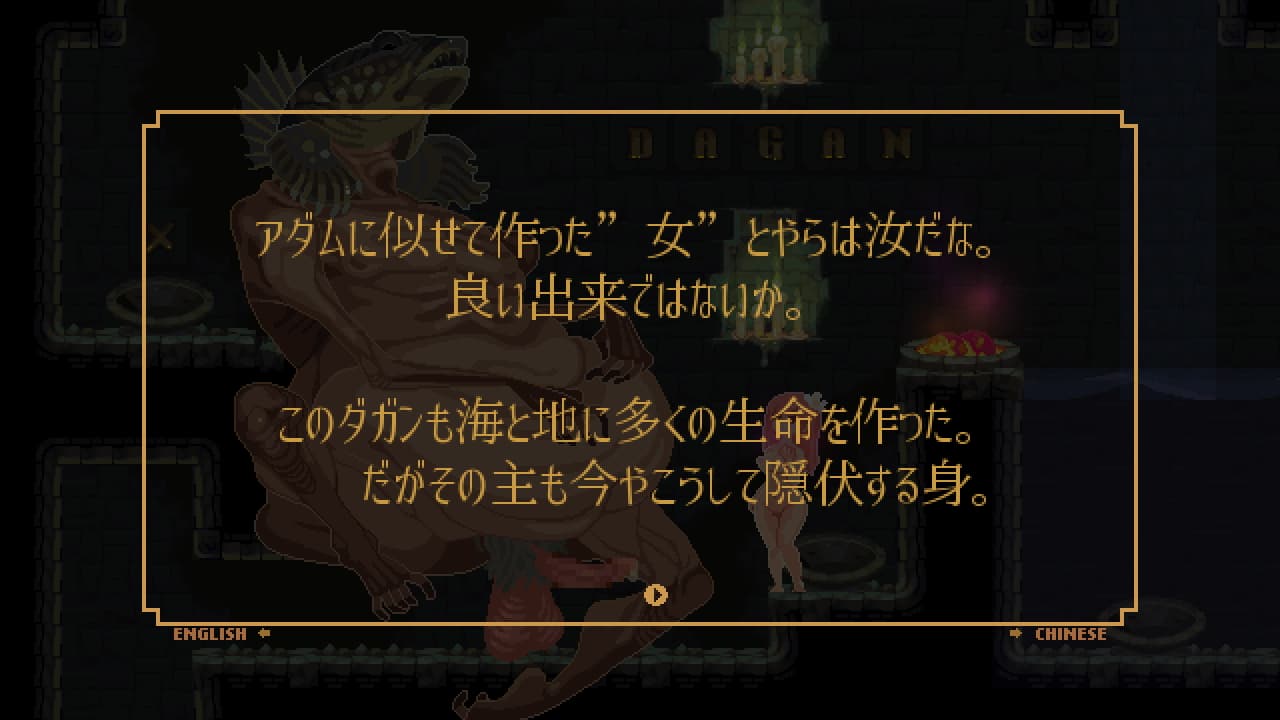 主人公は……まあ設定的にリリスっていう名前でイブでもあるんだが、この子の人間性能が低いからそもそもアクション性を楽しむみたいなゲームではないことは注意だな。敵に捕まったり犯されたりしつつもゆっくり着実に謎解きしていく感じのアクションゲーム。リリスの各種モーションもとても凝ったアニメーションだし見た目は凄く良いんだよね。