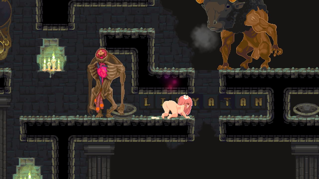 レベルデザイン自体は工夫を感じるものの、詰みっぽい箇所(オナニーによるアンロックが必要なのにリビドーを上げる果実が有限で近くにしかない)があったり、指摘の通りジャンプや敵避けミスのリトライがすごく長かったりで……