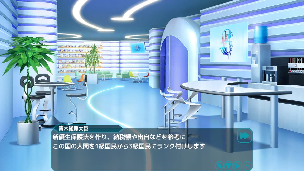 洗脳が進んでいるからか、3級国民になった運命を受け入れているからなのか、ヒロインたちからこともなさげに告げられるのは国民たちが相対する冷酷な現実についてです。ある意味女性は男よりも優遇されており、上級国民たちの妾になったり妻になれば身分以上の幸せを享受できることなど様々な設定を知ることができます。