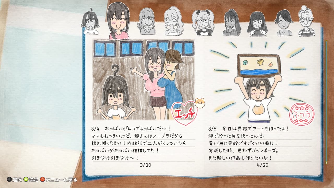 ヒロインのケツを追いかけてスキルポイントを貰いながらこの絵日記を埋めていくのがメイン目標となるだろう。ボクくん絵が上手いな