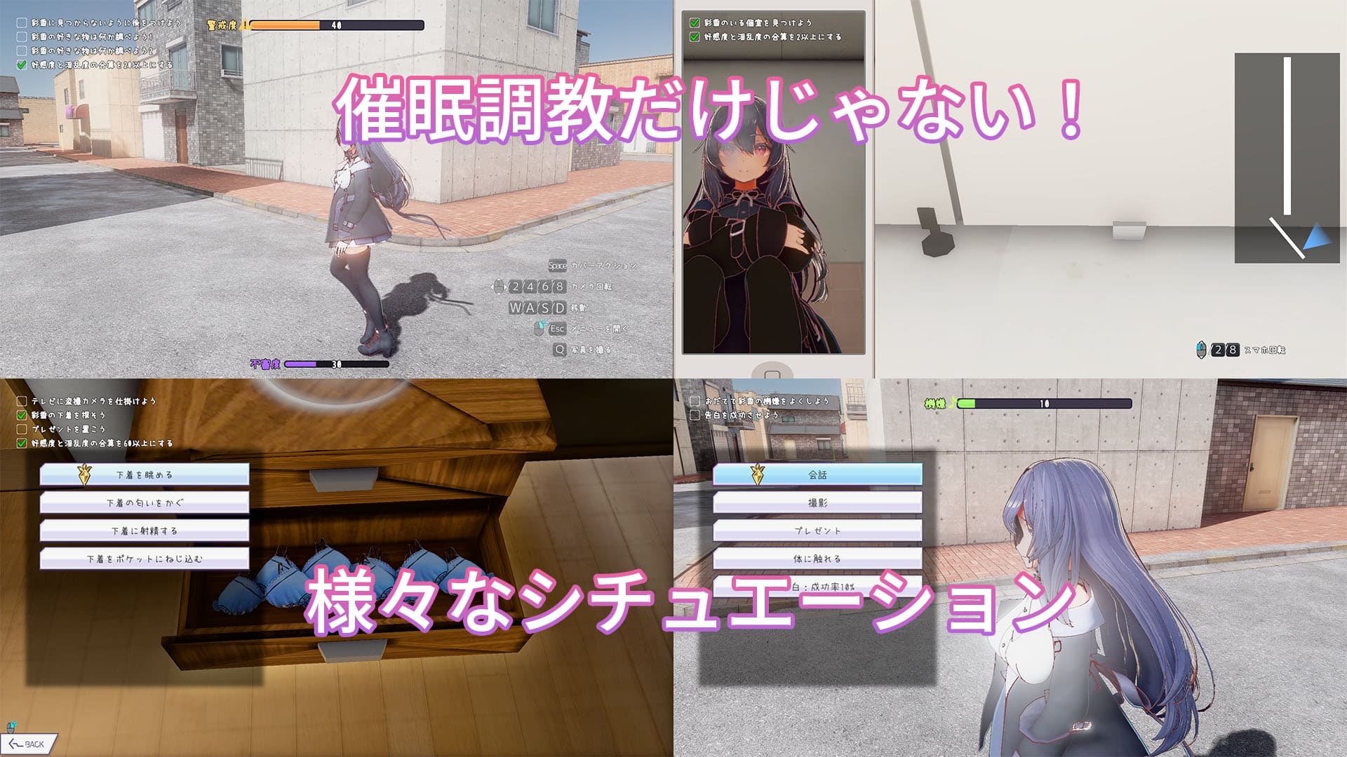 本作は3D催眠調教シミュレーションゲームです。