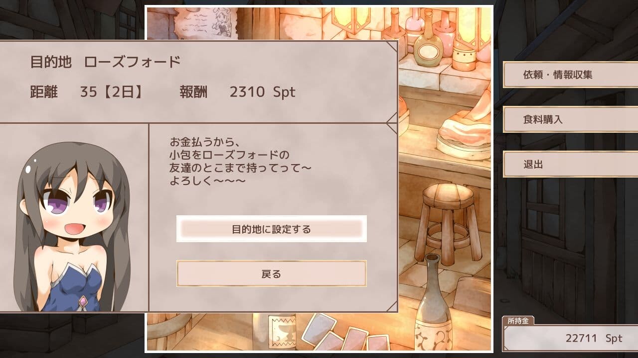 ゲームシステムとも関連しているが、デミテリアの旅人は荷物配達とかで路銀を稼ぐのが主な生活手段みたいでティレナがか弱い女の子であることに付け込まれて依頼料を誤魔化されたのを主人公が助けたのが決定打になって彼女の方からお願いされた。