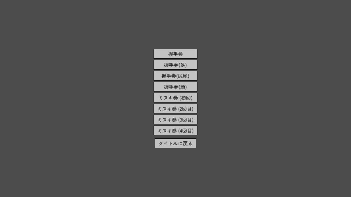 タイトル画面の回想については以上のような内容になっており、基本的にはシナリオ進行でぼったくりアイテムを購入することでシーンがアンロックされますが、ミヌキ券はプレイヤーが任意で起こすことで段階進行が記録されるものとなっています。