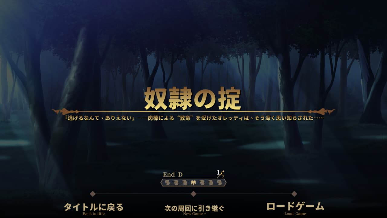 4日目終了時の選択肢で脱走を選ぶことで発生するゲームオーバー(End D)以外の6種のエンディングはルート分岐および最終盤の戦闘での勝敗で分岐するものになっています。